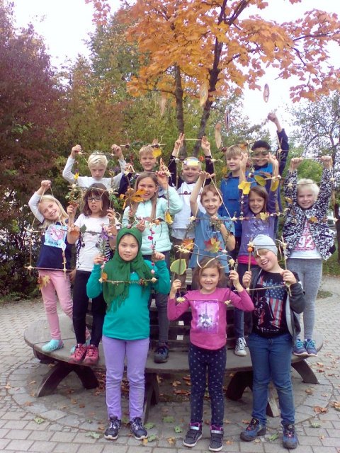 Die heilpädagogische Gruppe und die Klasse 3a stellen herbstliche Bilderrahmen her. …mehr